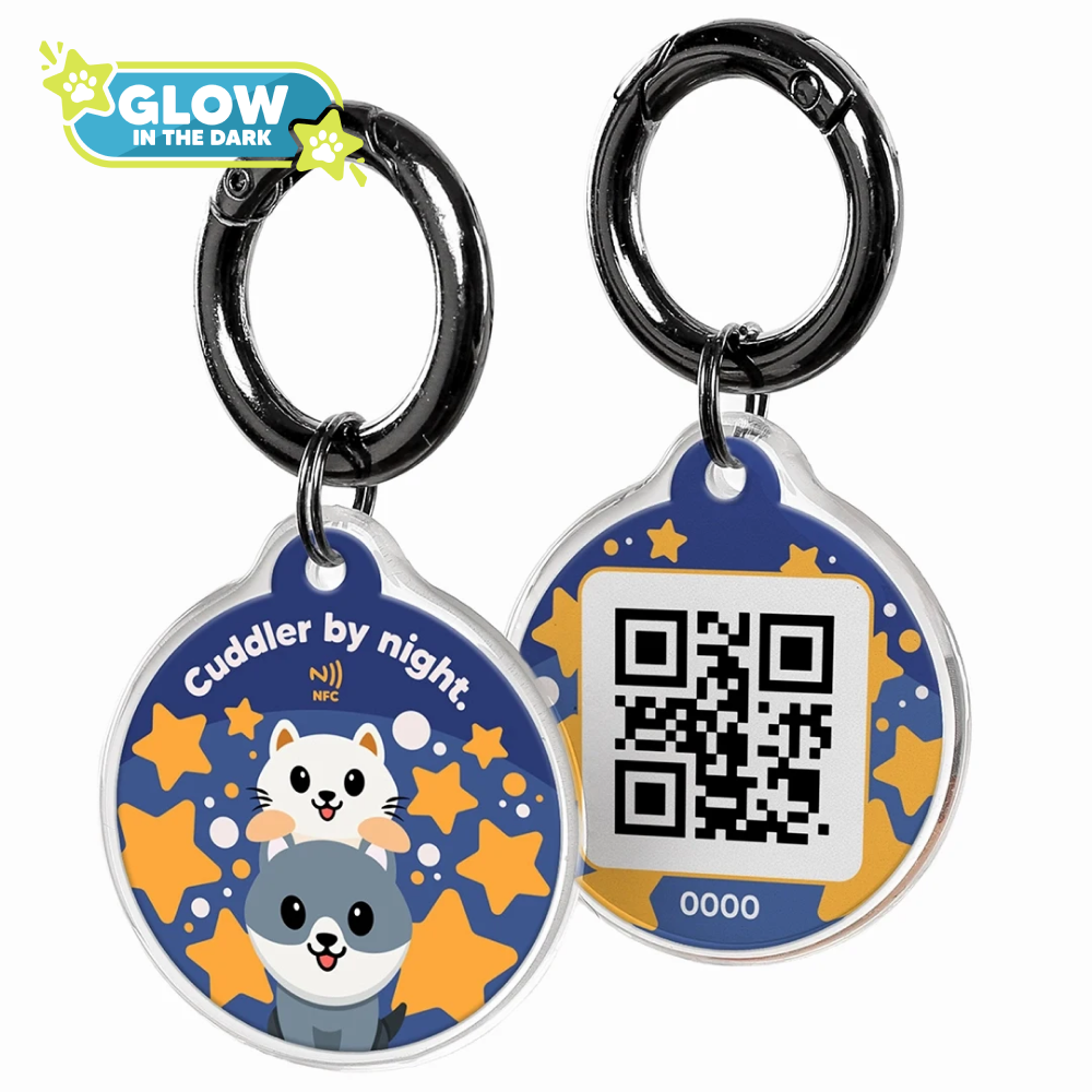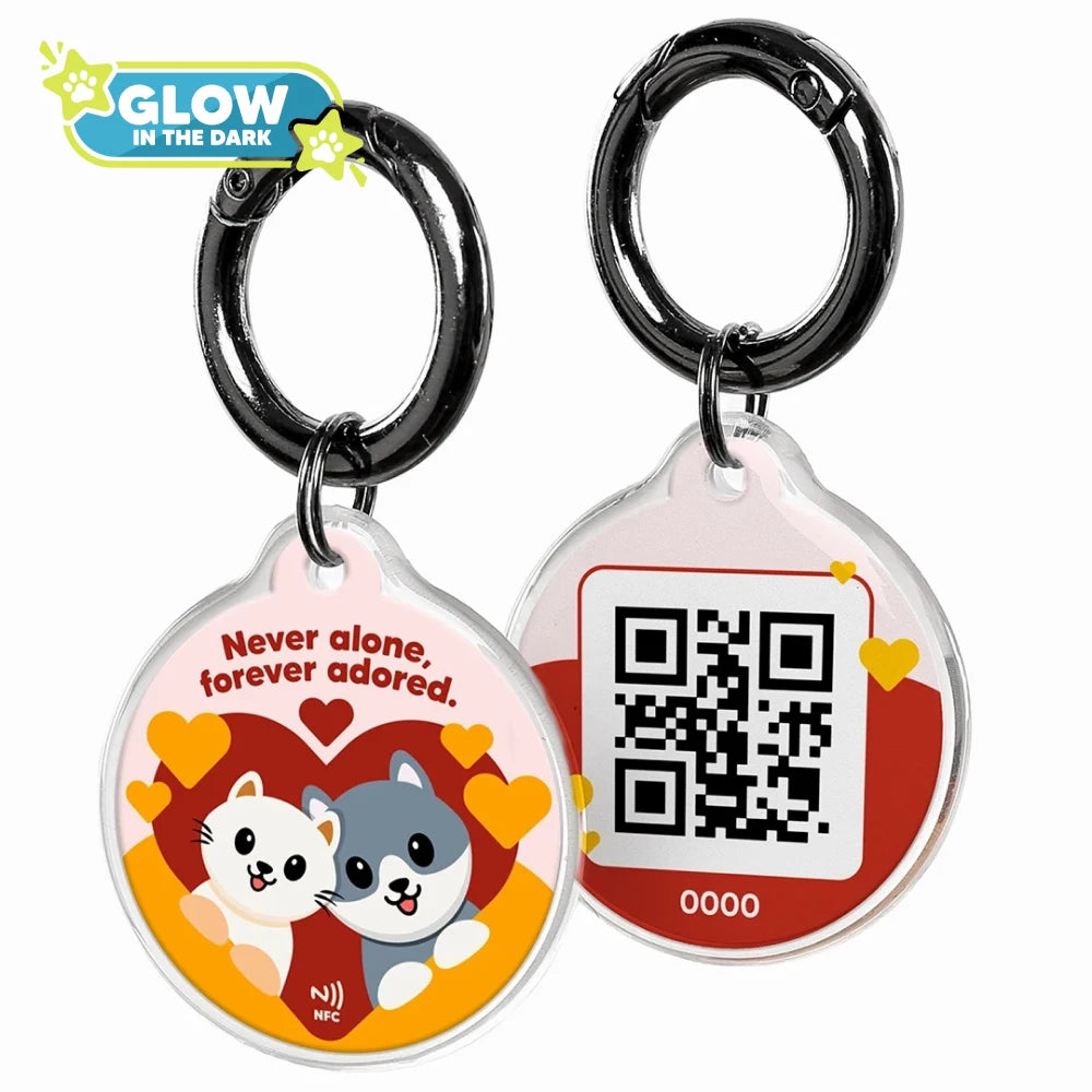 Capture the eternal bond between pets and their human companions with the IndieTag 'Never Alone'. This heartwarming pet tag features a cat and dog framed within a heart, symbolizing the deep, unconditional love pets provide. The phrase "Never alone, forever adored." reaffirms their cherished status, making this connected pet tag a testament to the enduring love that pet parents carry in their hearts. With integrated NFC technology, this loving pet accessory ensures that pets are always connected to their owners, perfect for those who want to keep their furry friends symbolically close.